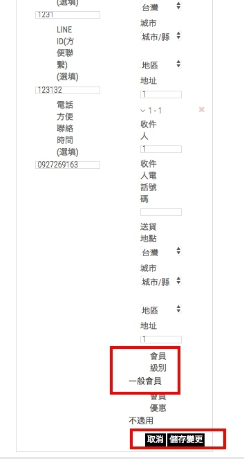 如果要查詢會員等級,在下圖的儲存變更上方處,可以看到會員等級