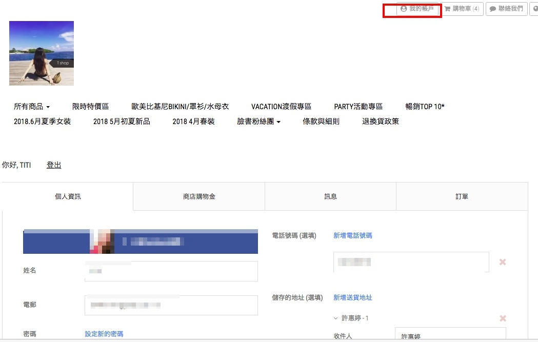 右上角我的帳戶點入後,畫面會導入如下圖畫面,即可修改密碼/名字/email及電話等資訊